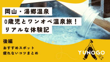 ワンオペで赤ちゃんと温泉旅行デビュー!岡山・湯郷温泉周辺のおすすめ店や道の駅「彩菜茶屋」の紹介、さらにワンオペ旅でも疲れないコツを実体験から分かりやすくまとめています。