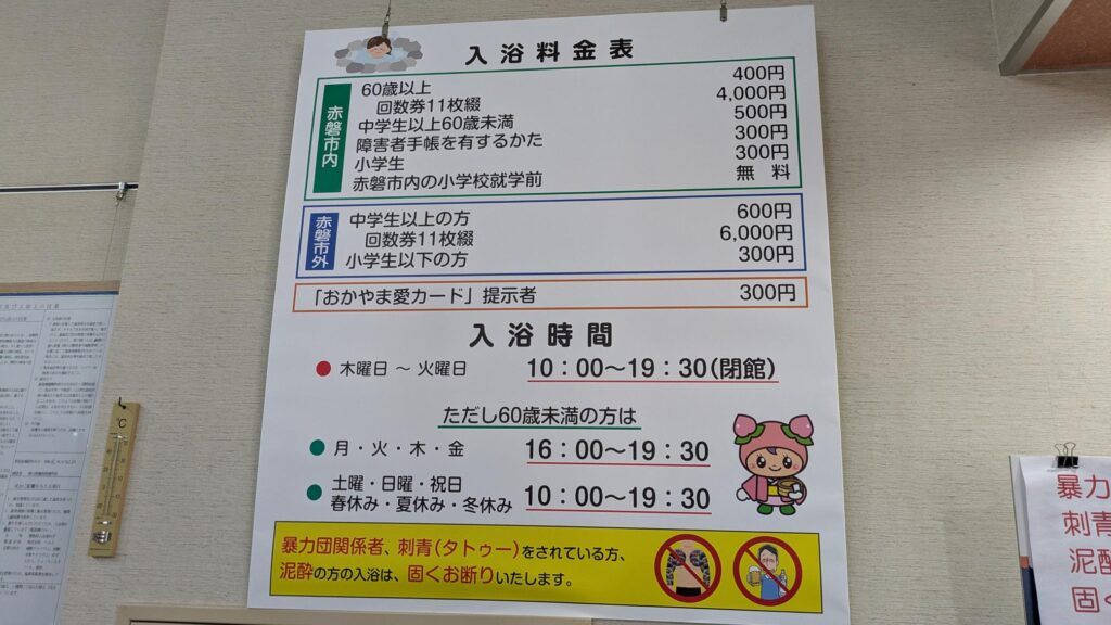 | 赤磐市在住 大人入浴券(60歳未満) | 500円 |