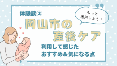 暮らし・お悩み解決 岡山市の産後ケアを利用して感じたおすすめ&気になる点【体験談①】 岡山市の産後ケアを体験!宿泊・訪問ケアのリアルな感想と気になるポイントを口コミで紹介。プレママや育児に不安なママ必見です。 2025.09.02 暮らし・お悩み解決
